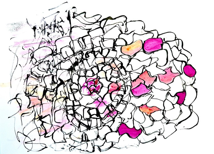 Leche de tigre microscópica. 2024. Tinta china y acrílico sobre papel de acuarela. 29x41cm.
