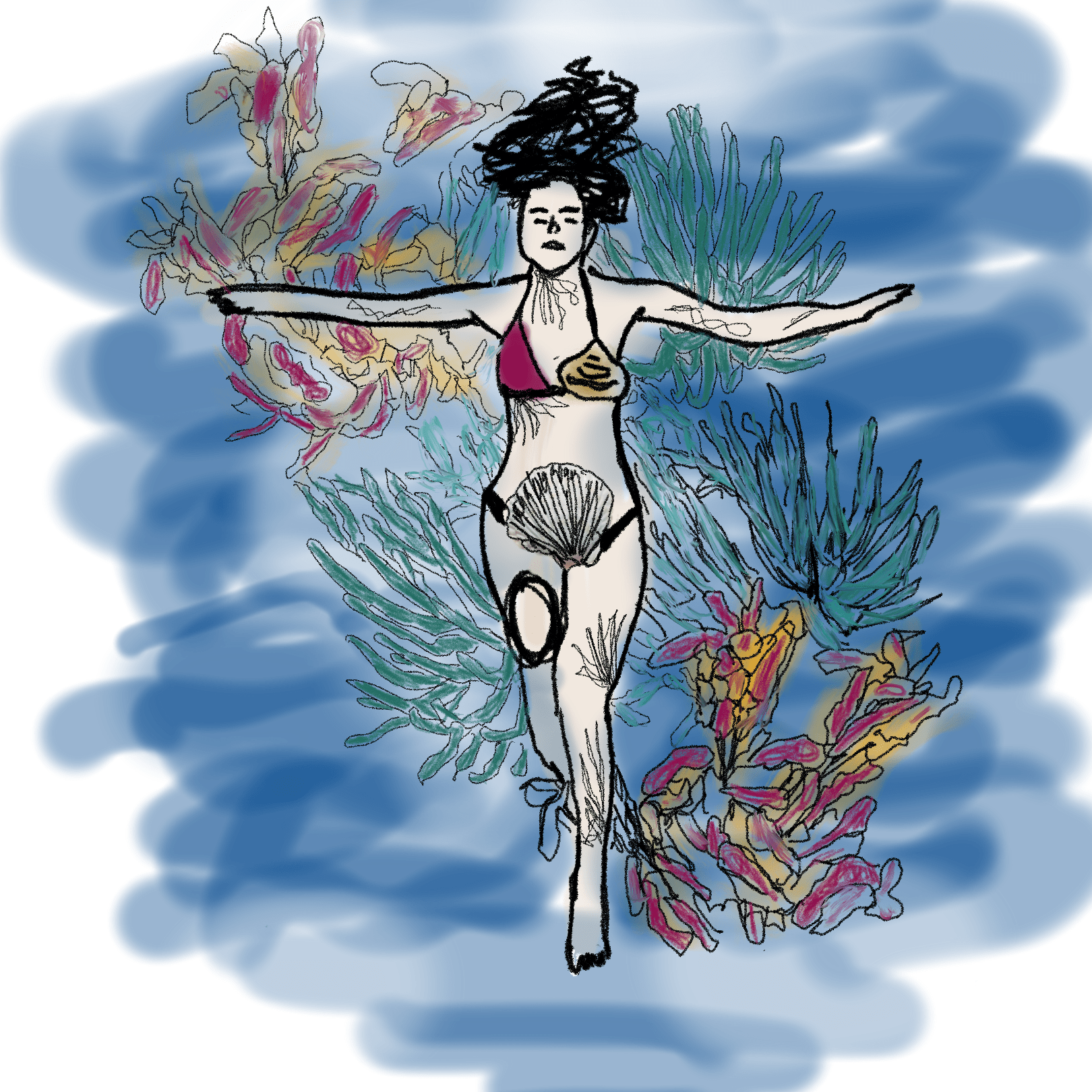 Flotando. 2025. Ilustración digital. Impresión a láser sobre cartulina texturizada. 42×29,7cm. Ed: 1/7 + 2PA.