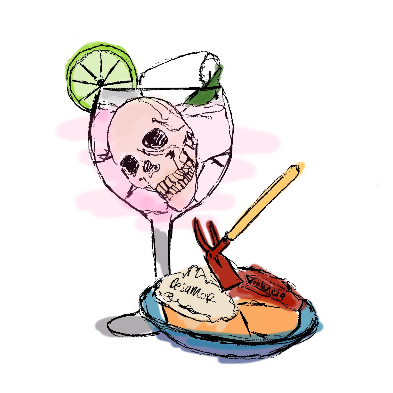 Aperitivo del duelo. 2025. Ilustración digital. Impresión a láser sobre cartulina texturizada. 42×29,7cm. Ed: 1/7 + 2PA.
